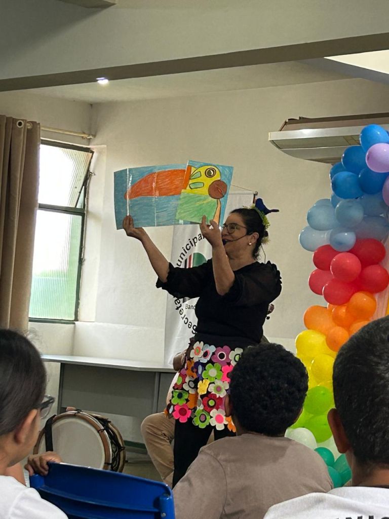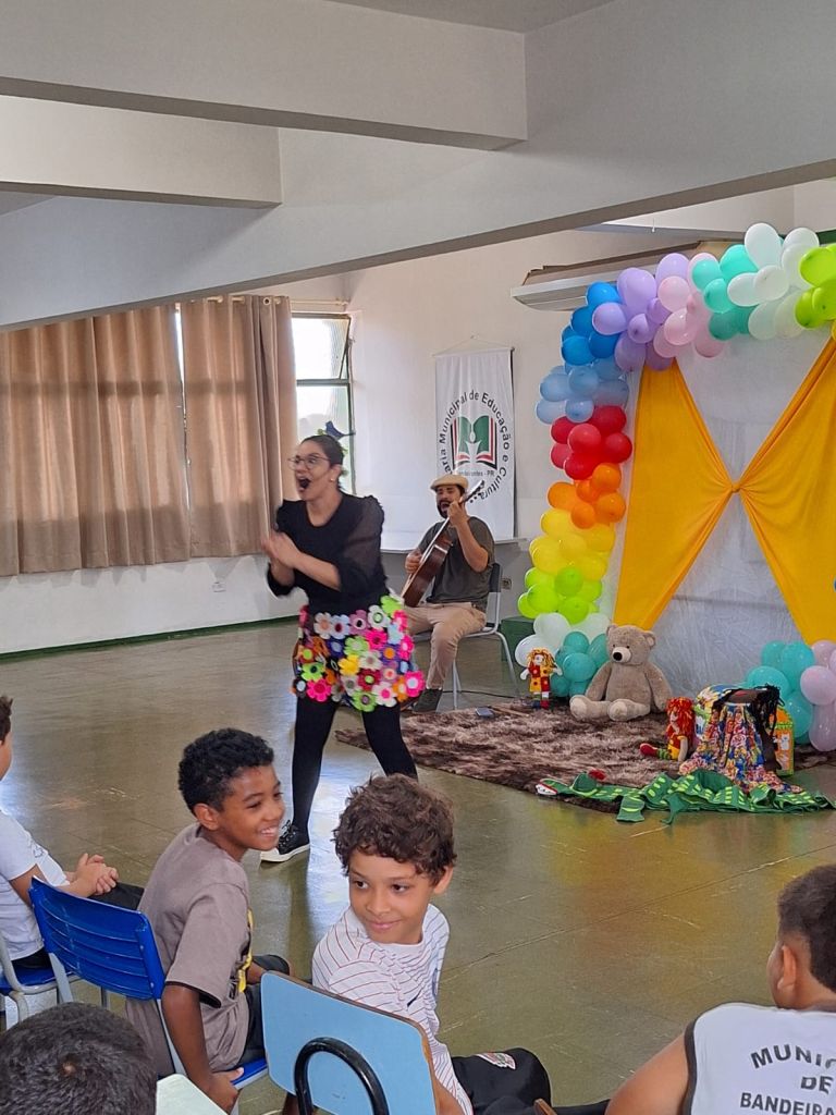 A programação cultural foi um verdadeiro convite à imaginação com o espetáculo teatral "Mundo da Criança". O grupo Criativa Mais Cultura, de Limeira-SP, fez diversas apresentações em escolas municipais, como a Santa Terezinha, entre os dias 8 e 10 de outubro. A peça narra a aventura dos amigos Pedrinho e Lili, que usam a força da amizade para combater o vilão Senhor da Escuridão. Com cenários vibrantes e muita música, o espetáculo resgatou a essência da infância, reforçando valores como união, amizade e a importância das brincadeiras coletivas.