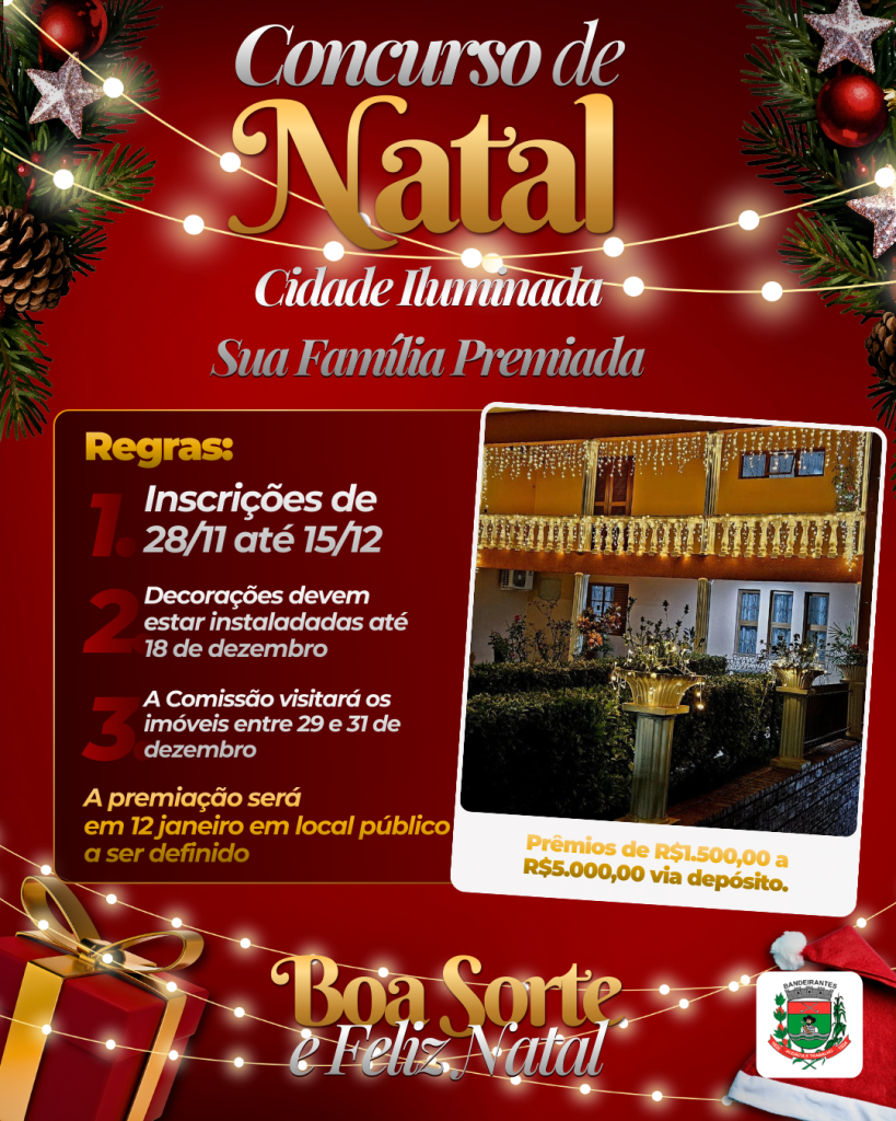 Em 2024, a participação da comunidade surpreendeu, encantou e mostrou o quanto Bandeirantes ama celebrar o Natal de forma acolhedora e vibrante. Agora, em sua segunda edição, o concurso promete superar todas as expectativas, valorizando ainda mais o envolvimento das famílias e o brilho de cada canto da cidade.