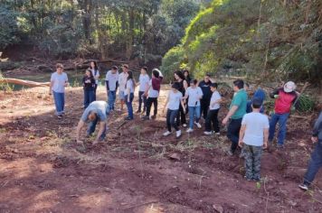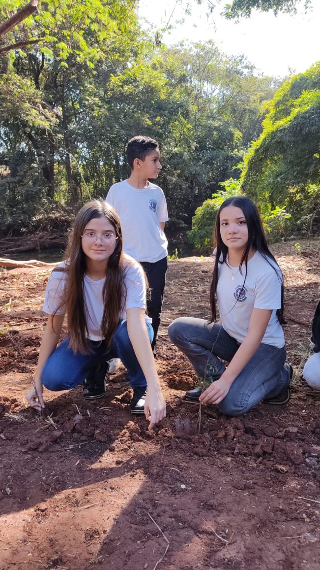 Alunos da Rede Pública plantando mudas nas proximidades da ETE do SAAE