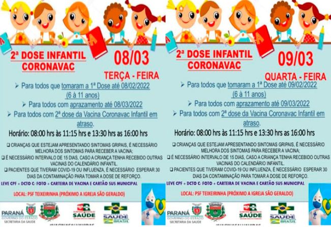 PARA TODOS COM A SEGUNDA DOSE DA VACINA CORONAVAC INFANTIL ATRASADA.