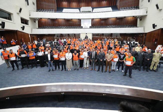 "Especialmente nesse momento que estamos vivenciando situações atípicas de mudanças climáticas, temos que valorizar cada vez mais o papel do atendimento aos desastres", afirmou Goura durante a homenagem. "Desastres que tem a ver às com as águas, com o calor, com o fogo e, por isso, a Defesa Civil precisa ser valorizada pelo poder público. (...) Todos os estudos da ciência estão mostrando isso e estamos sentindo isso".
